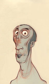 I drew a polar bear on a bike a few posts back and now I'm doing a grizzly on a unicycle...I think my subconscious is telling me to buy a bear suit and join the circus. This one started out as a test and turned into something fun. The happy/sad face was inspired by an SNL skit that made me pee my pants (not really)...so i gave it a shot. I worked larger than usual and used markers to get textures that followed the forms. I posted a detail so you guys and gals can get a closer look. Nos Vemos.
